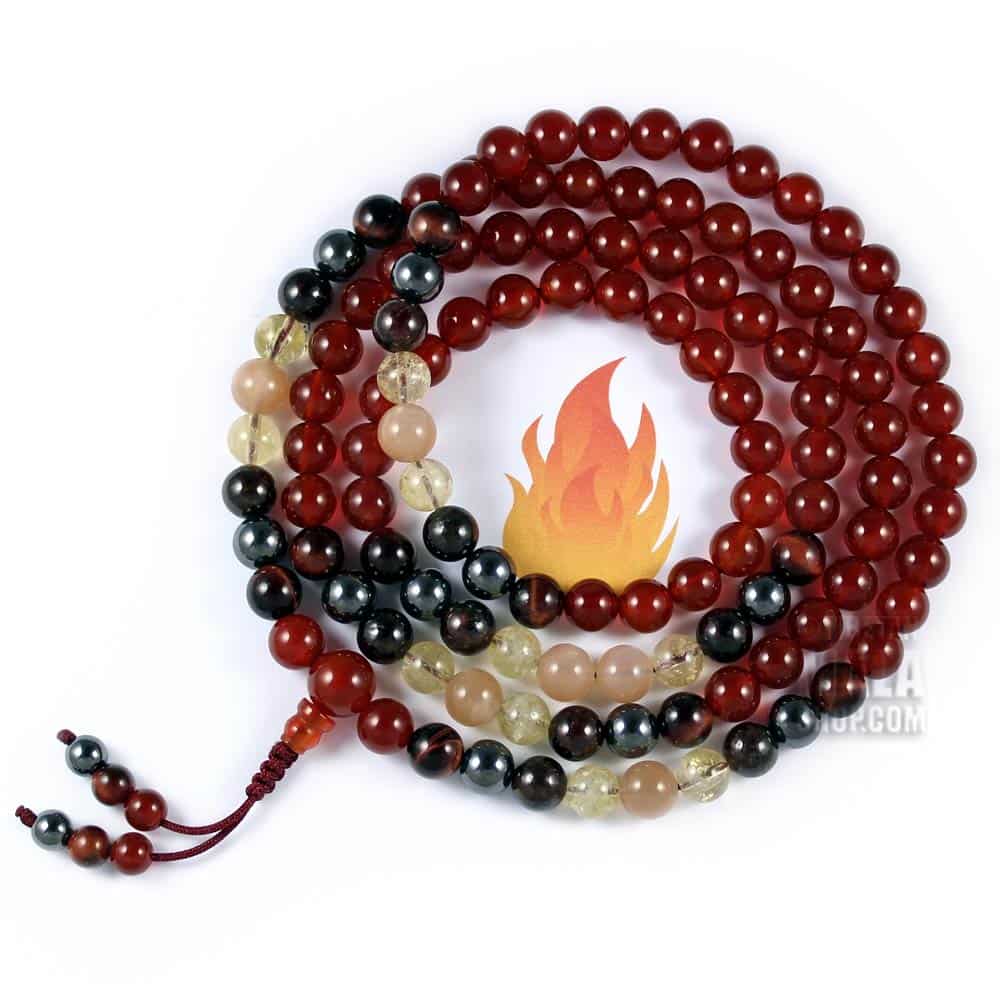 Fire Element Mala with Carnelian, Red Tigers Eye, Hematite, Garnet, Citrine & Sunstone