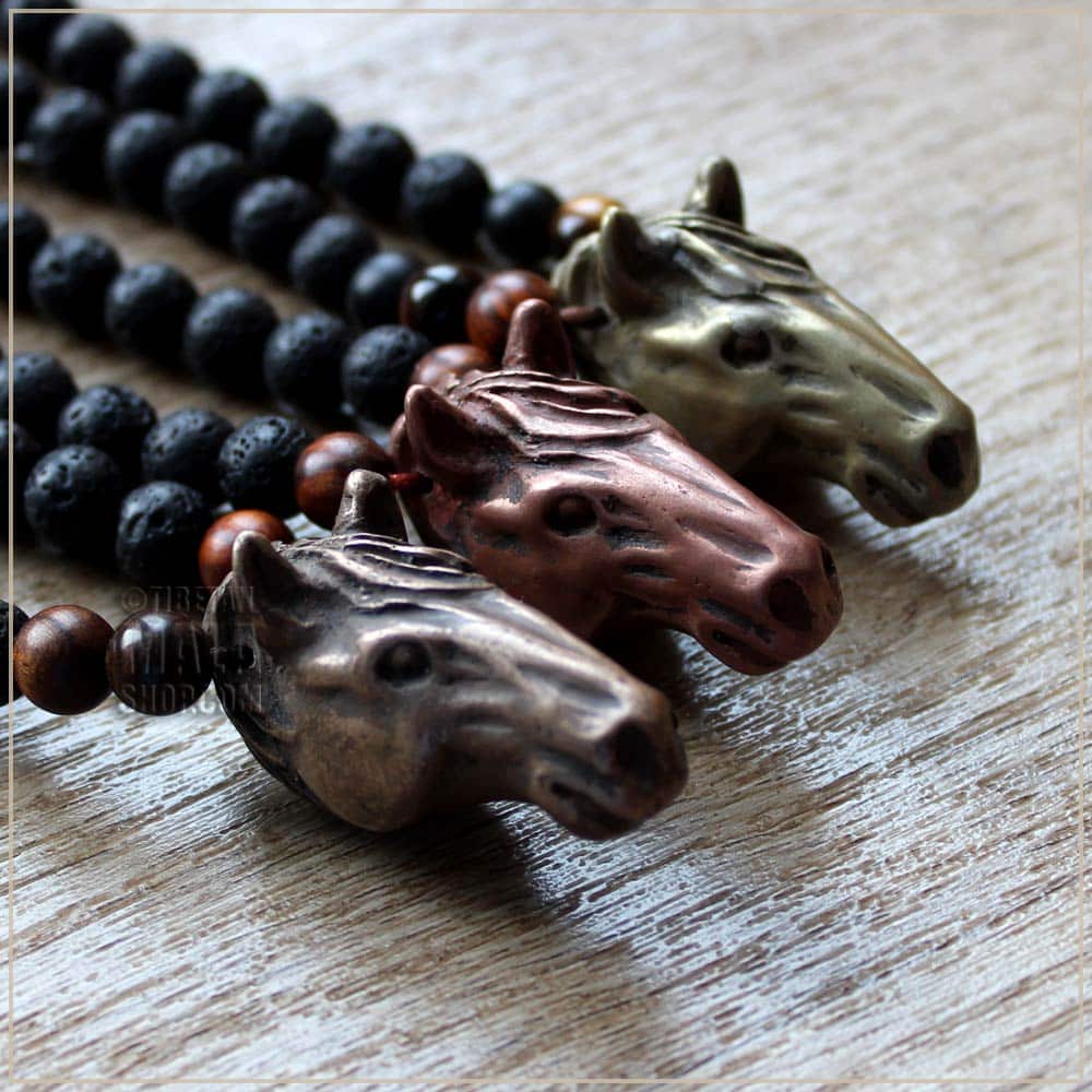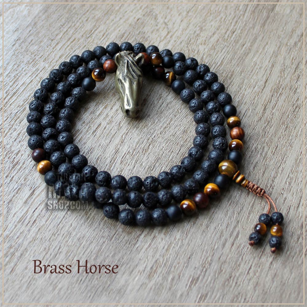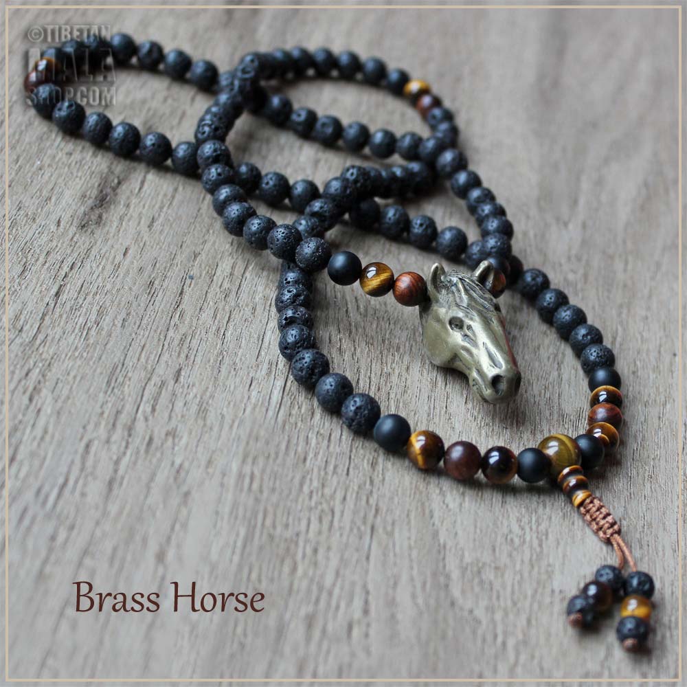 Brass Horse ~ with Lava Rock, Tiger Eye, Ebony & Matte Onyx