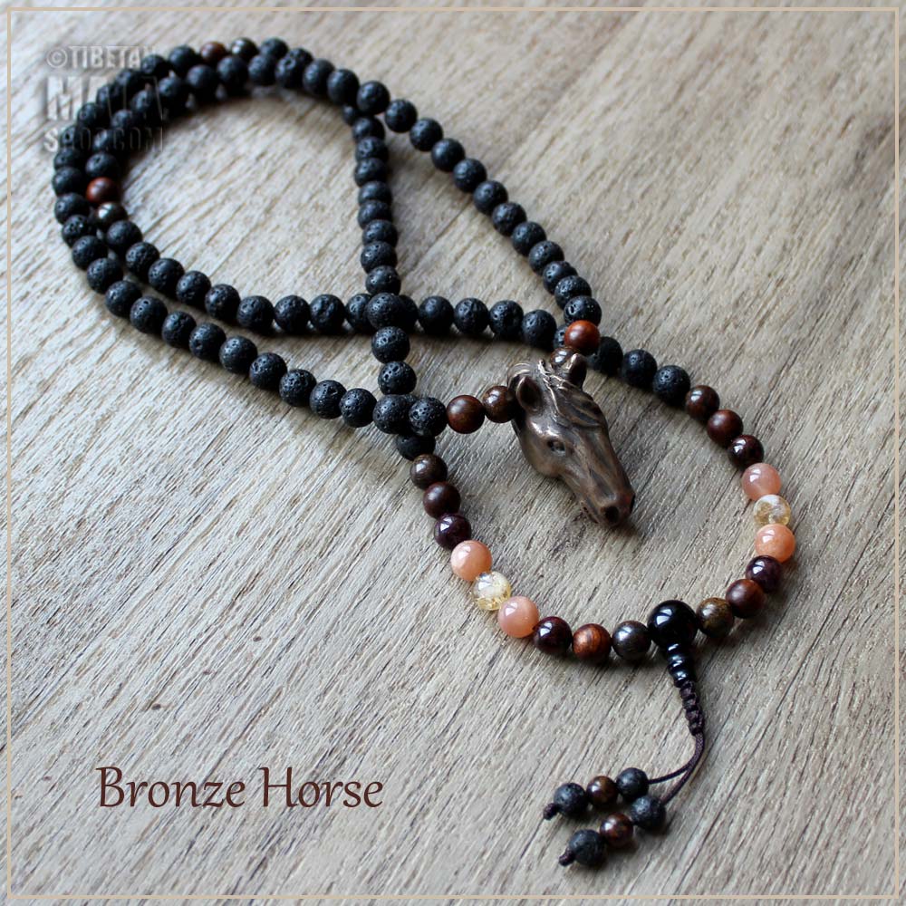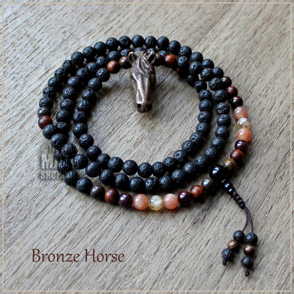 Bronze Horse ~ with Lava Rock, Bronzite, Ebony, Garnet, Sunstone, Citrine & Onyx
