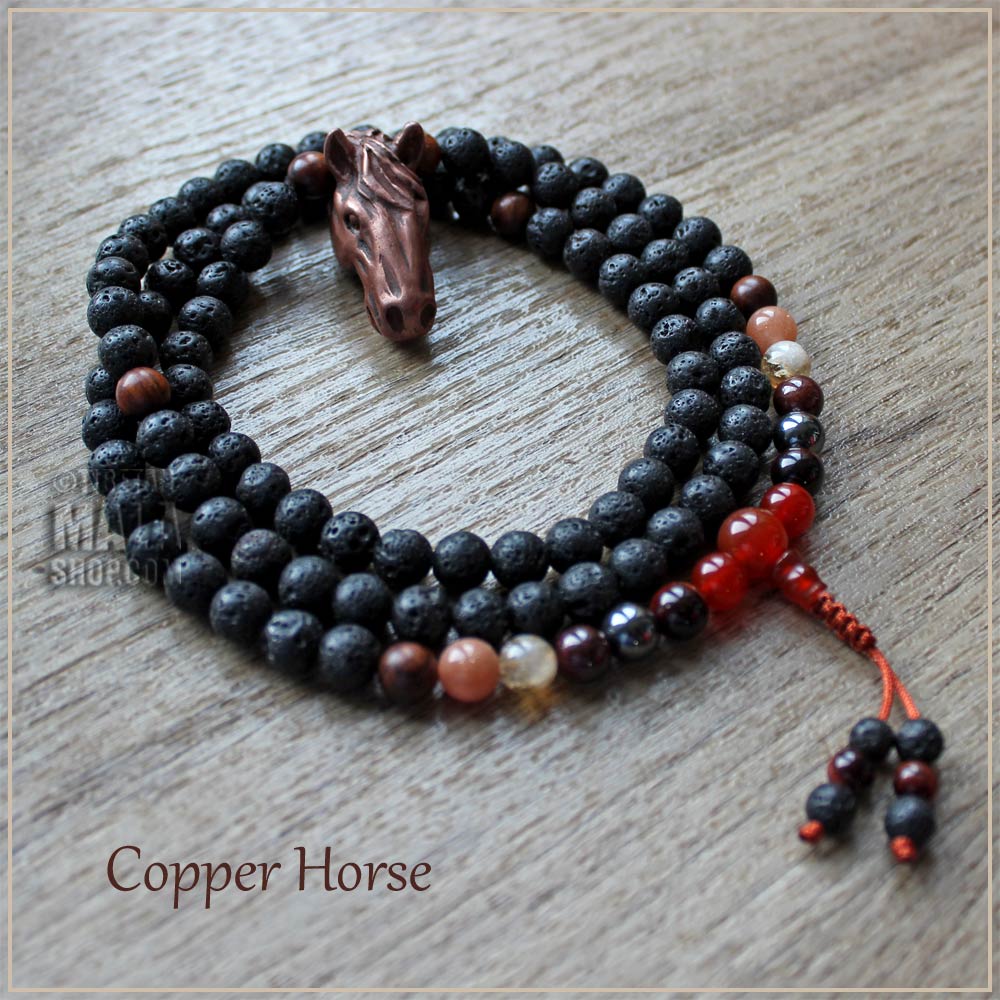 Copper Horse ~ with Lava Rock, Ebony, Sunstone, Citrine, Garnet, Hematite, Red Tiger Eye & Carnelian