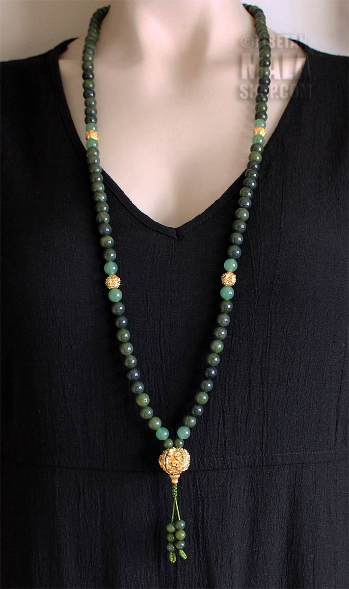Healing Properties at a glance Jade – love, courage, justice, wisdom, calms the mind Rudraksha – wipe away tears, happiness Gold – wealth, success, good health, confidence, will power Aventurine – protects the heart, emotional calm & harmony, dissolves negative thoughts & emotions