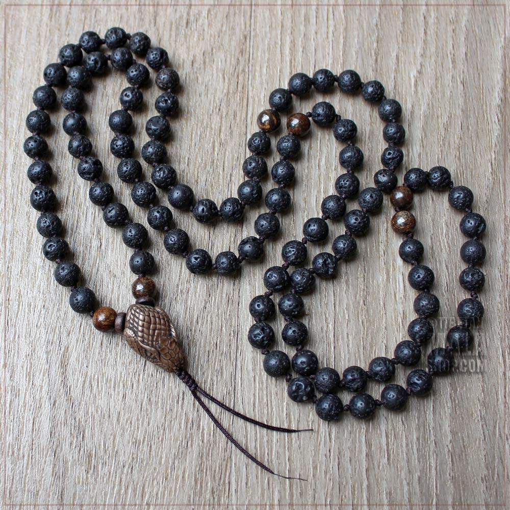 Snake Knotted Mala with Lava & Bronzite