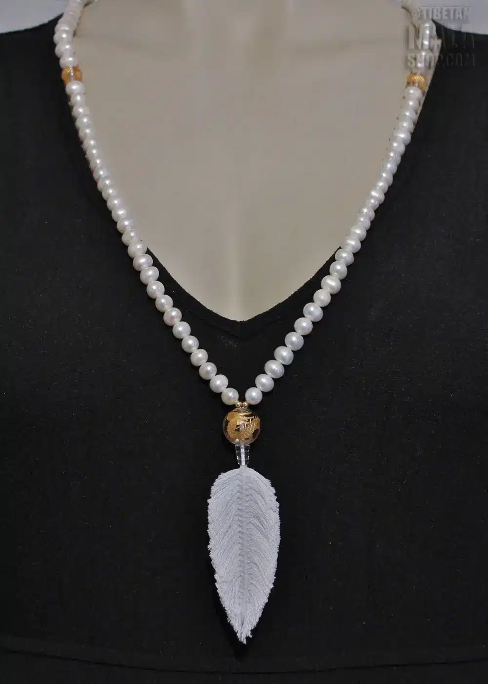 Pearl feather mala ~ beautifully crafted then blessed with the mantra OM RUCHIRA MANI PRAVARTAYA HUM. Suitable for mantra, mindfulness and meditation.