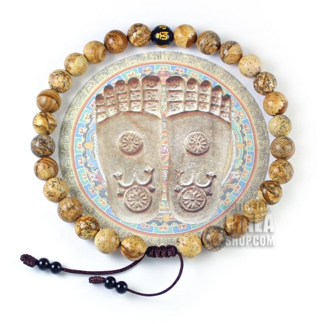 with Picture Jasper & Carved Onyx Om Mani Mantra Bead