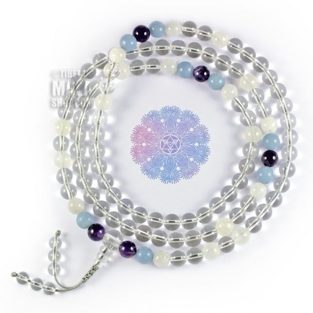 Soul Star chakra mala ~ finished with a movable knot to adjust the tension of the mala thread & complimentary lotus mala bag.