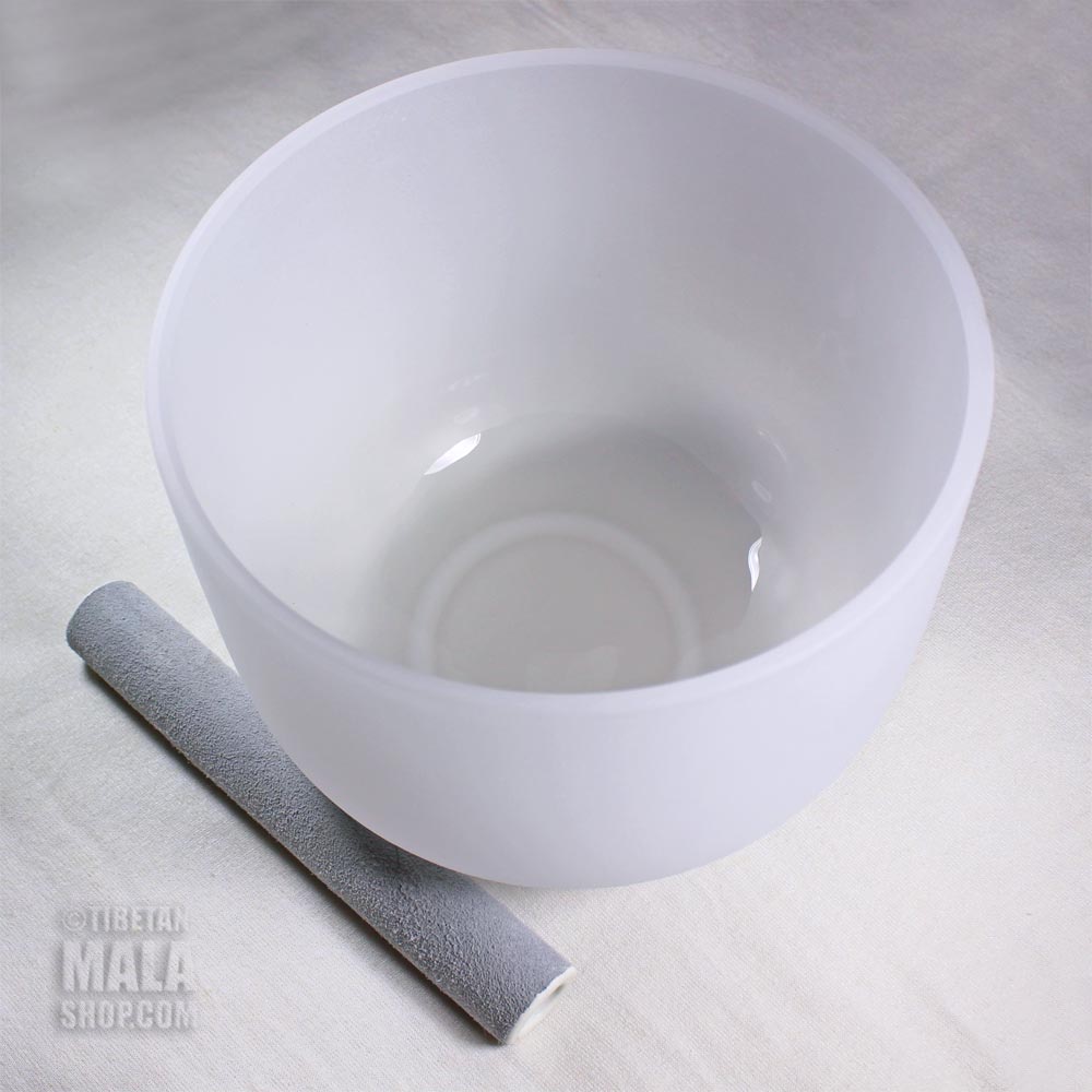 Crystal singing bowl set includes O-ring & suedette ringing stick