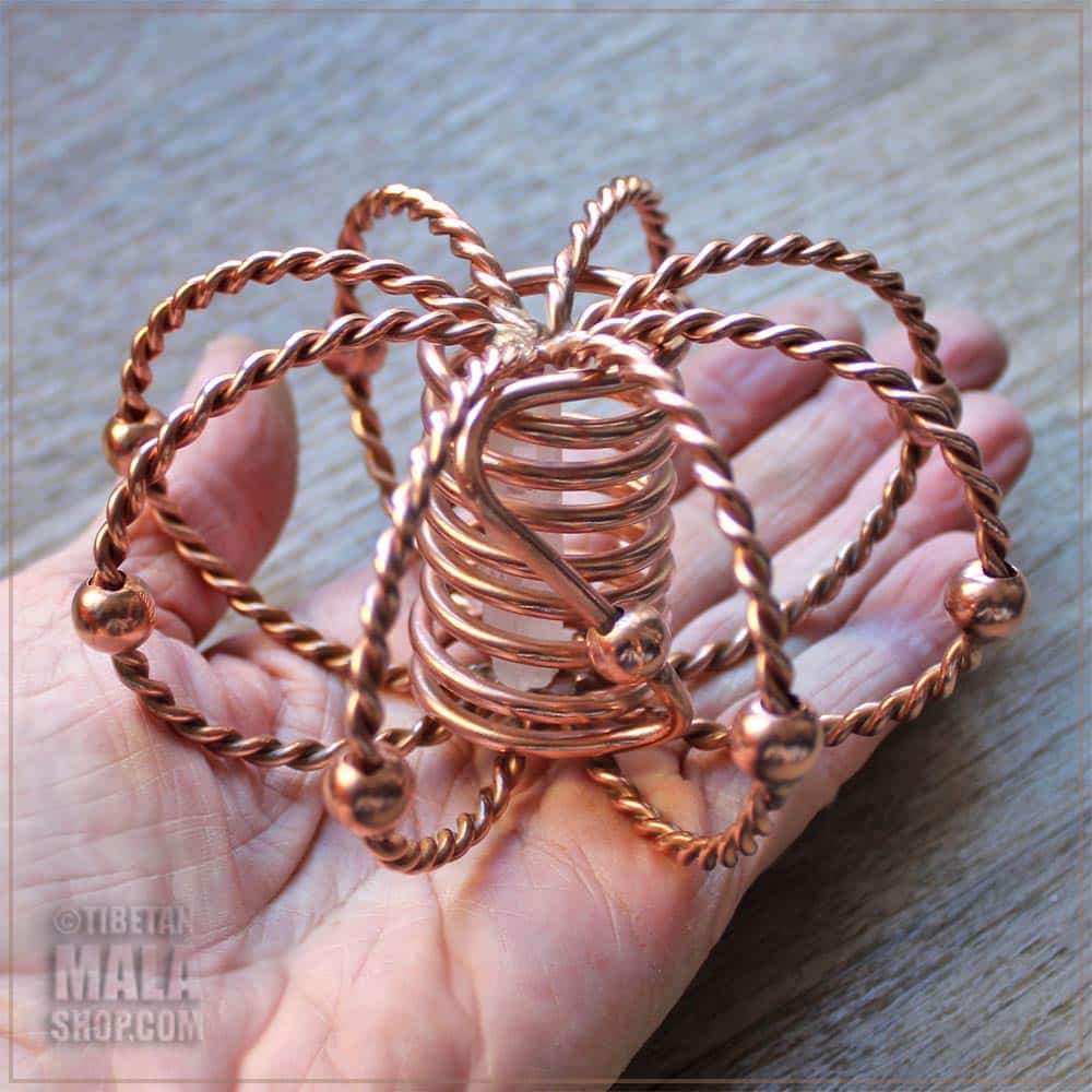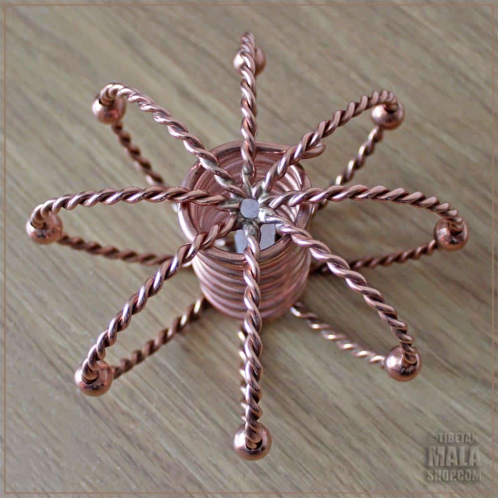 The 8 spoke torus, coil and beads are hand made from pure bare copper.