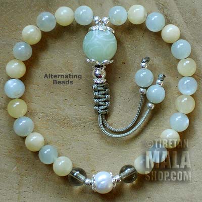 Fully adjustable wrist yoga beads using a slide knot, see adjustable wrist mala guide