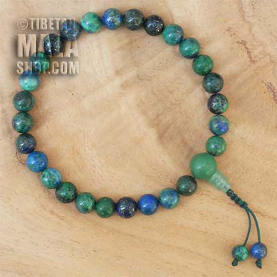 Chrysocolla wrist mala ~ lovingly crafted and blessed by our team of meditators. Suitable for mantra recitation, mindfulness practice, meditation, yoga, prayer & reflection.