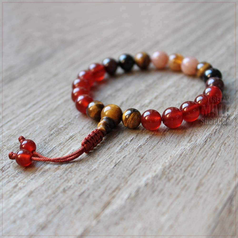 Neatly finished with carnelian end beads & an adjustable slide knot.