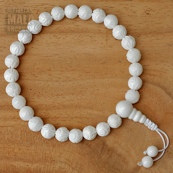 I love this beautiful wristmala, the conchshell with carved lotuses! It means a lot to me and reminds me greatly of my practice by seeing it! Thank you!