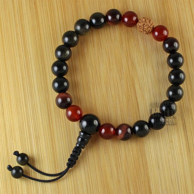 Obsidian with Red Tiger Eye, Carnelian & Rudraksha