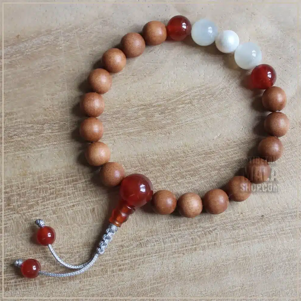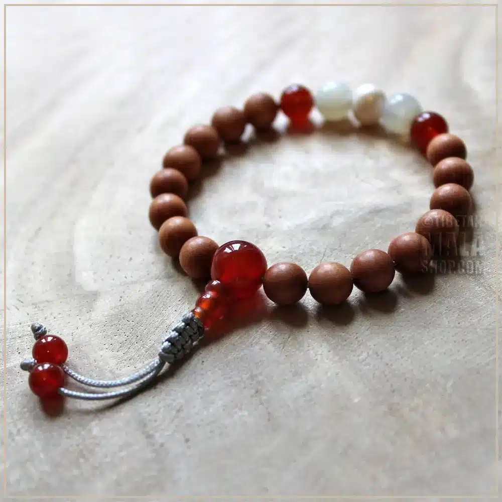 Cancer birthstone mala bracelet ~ lovingly crafted, then blessed with the mantra OM RUCHIRA MANI PRAVARTAYA HUM. Suitable for mantra recitation, mindfulness practice, meditation, yoga, prayer & reflection.